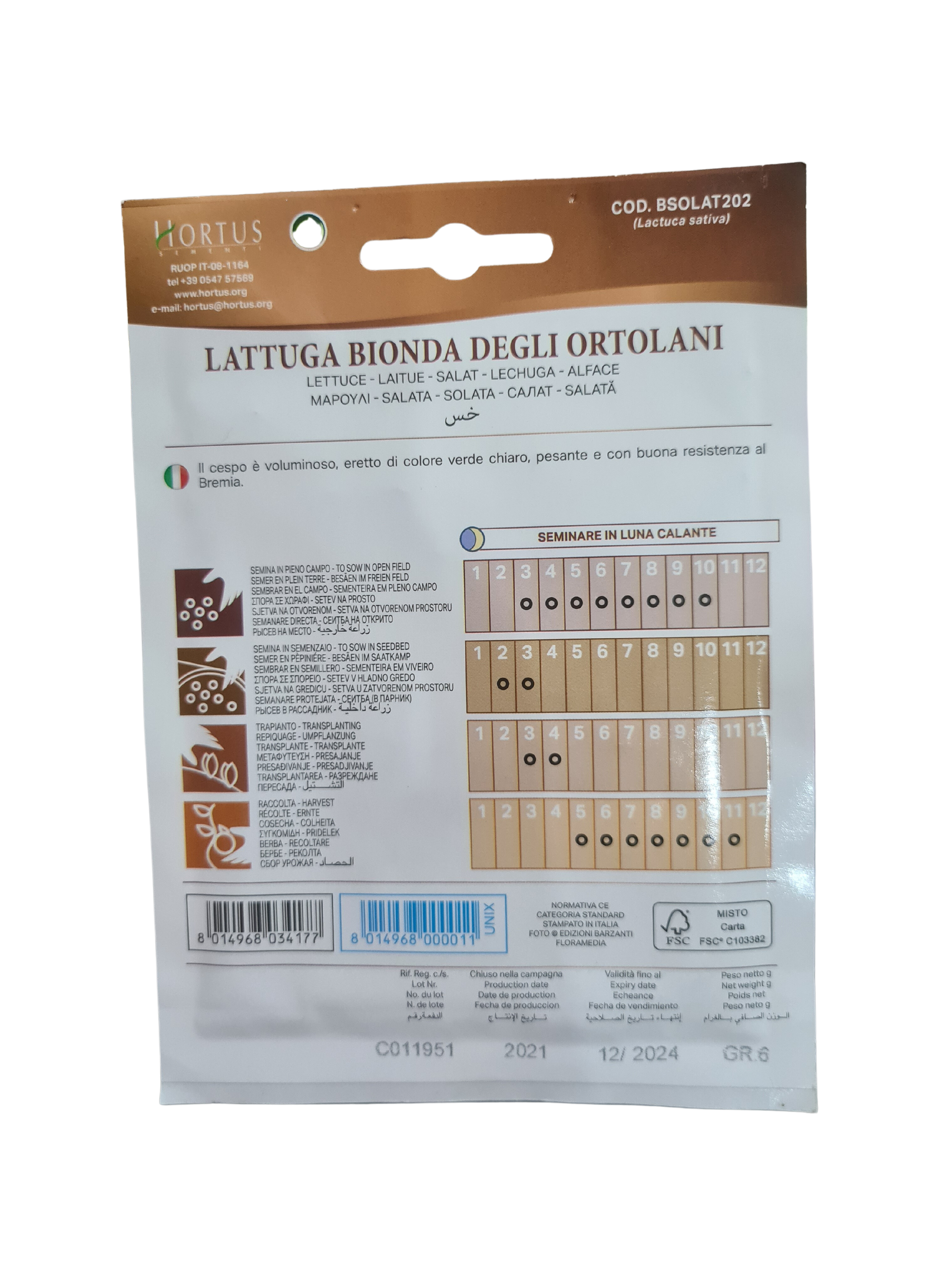 Light green coloured leaves, shiny and elongated. Large stems, white at the heart. Large head, compact and tender. Heavy and very uniform, with excellent appearance.SOWING: in seeds bed from February to May. Trasplant when seedlings have 4-5 leaves, in rows at intervals of 30-40 cm leaving 30-40 cm between rows.