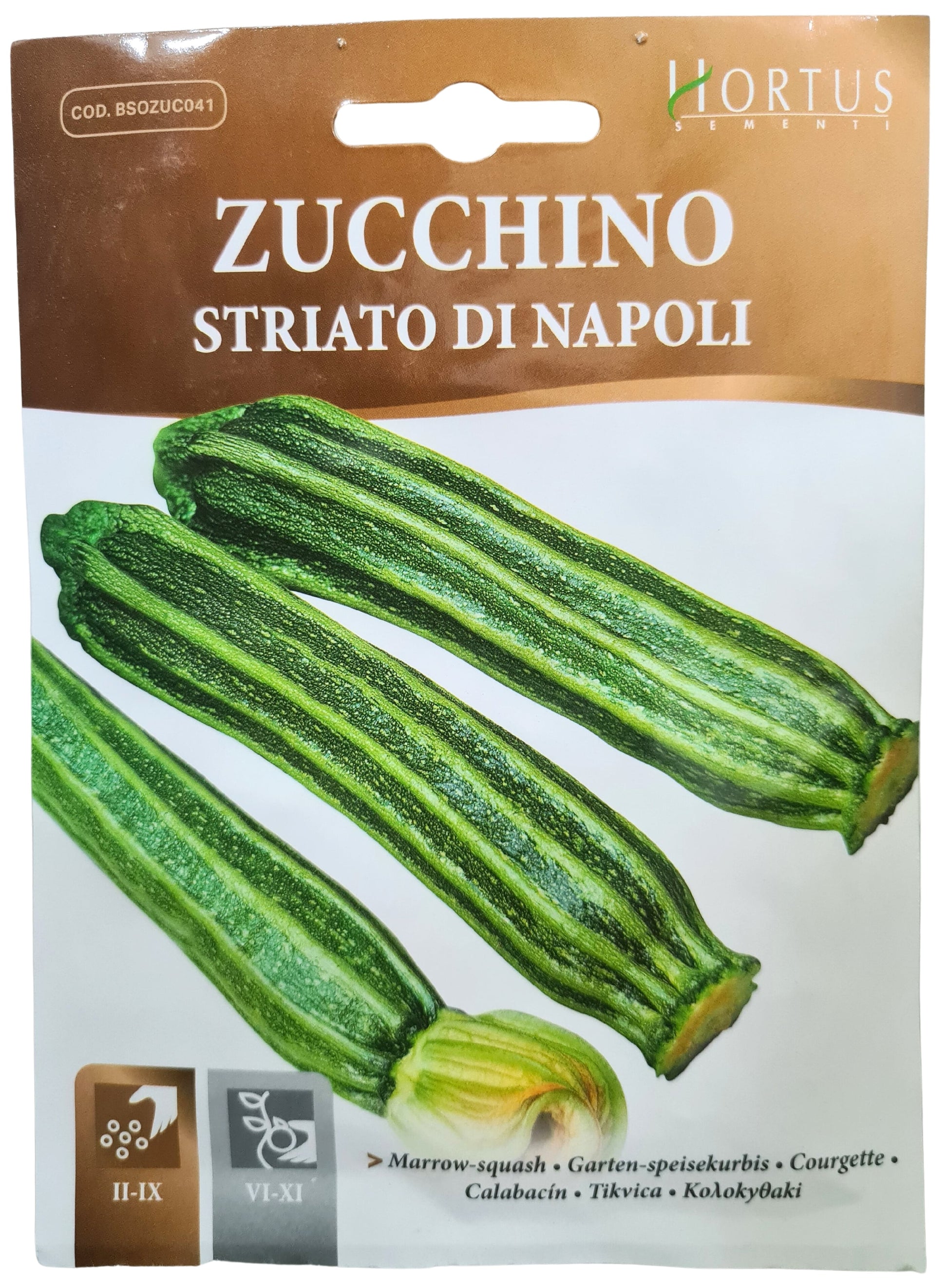 Medium-sized plant with a semi-erect habit. Cylindrical fruit 20-22 cm long, green in color with lighter streaks , slightly ribbed . Early cycle .Deposit a group of seeds at a depth of 2-3 cm and at a distance of about 150 cm from row to row and 60 cm on the row, on humidified soil. Keep moist until germination.