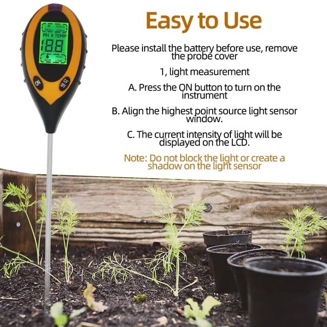 4 In 1 Digital Soil Meter - Light, pH, Temperature & Moisture Meter
