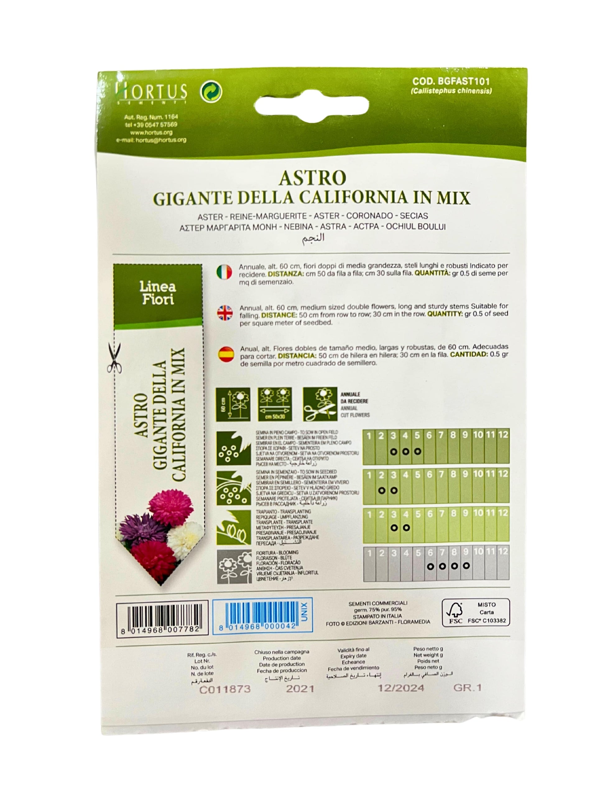Medium sized double flowers, long and sturdy stems. Suitable for falling. Distance: 50cm from row to row; 30 cm in the row. Quantity: g 0.5 of seed per square meter of seedbed.