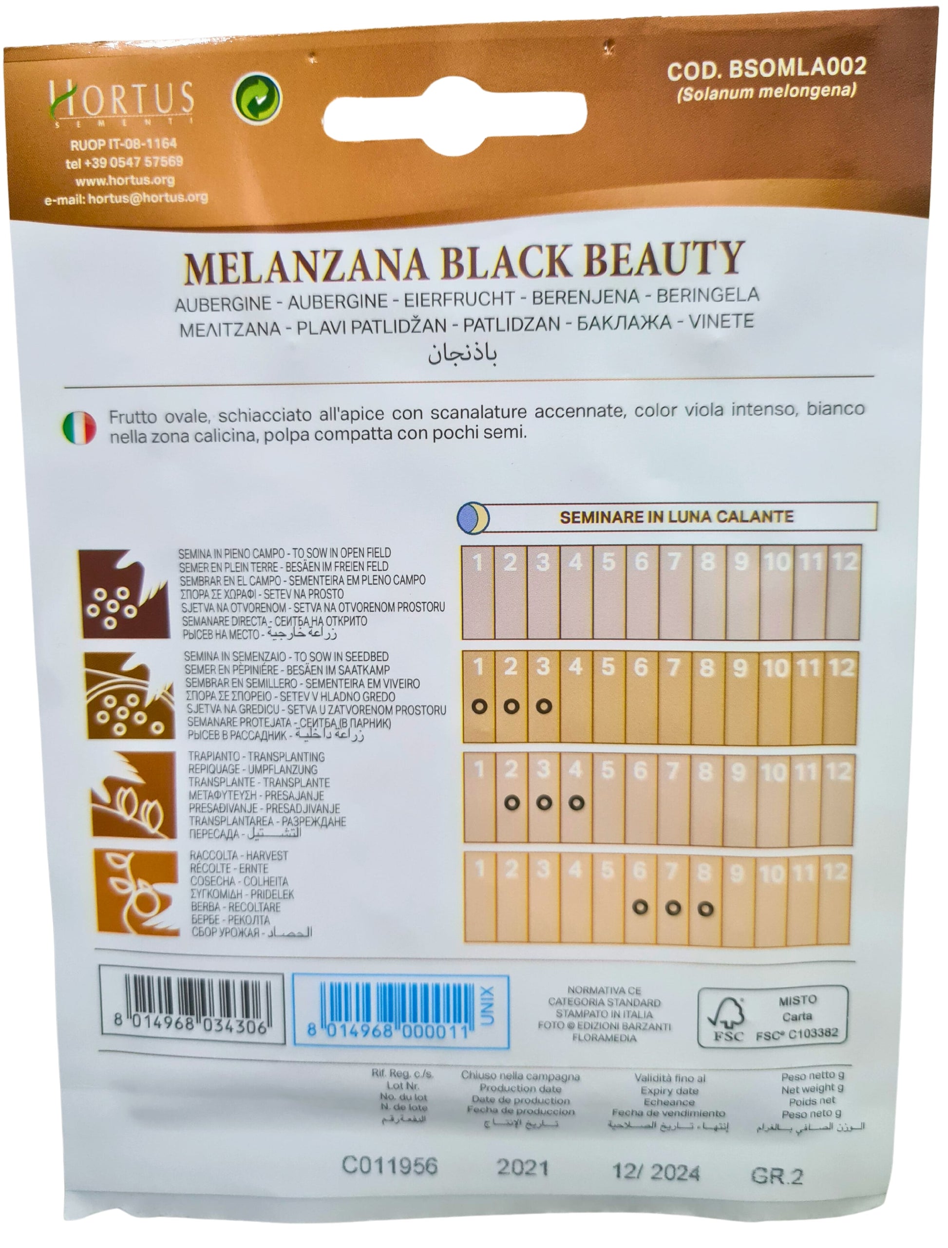Round, medium sized fruits with dark purple shiny skin and very few seed inside. SOWING: about 8-10 weeks before the last expected spring frost, plant the seeds in pots 1/4" deep.Planting distance: 100 x 60 cm