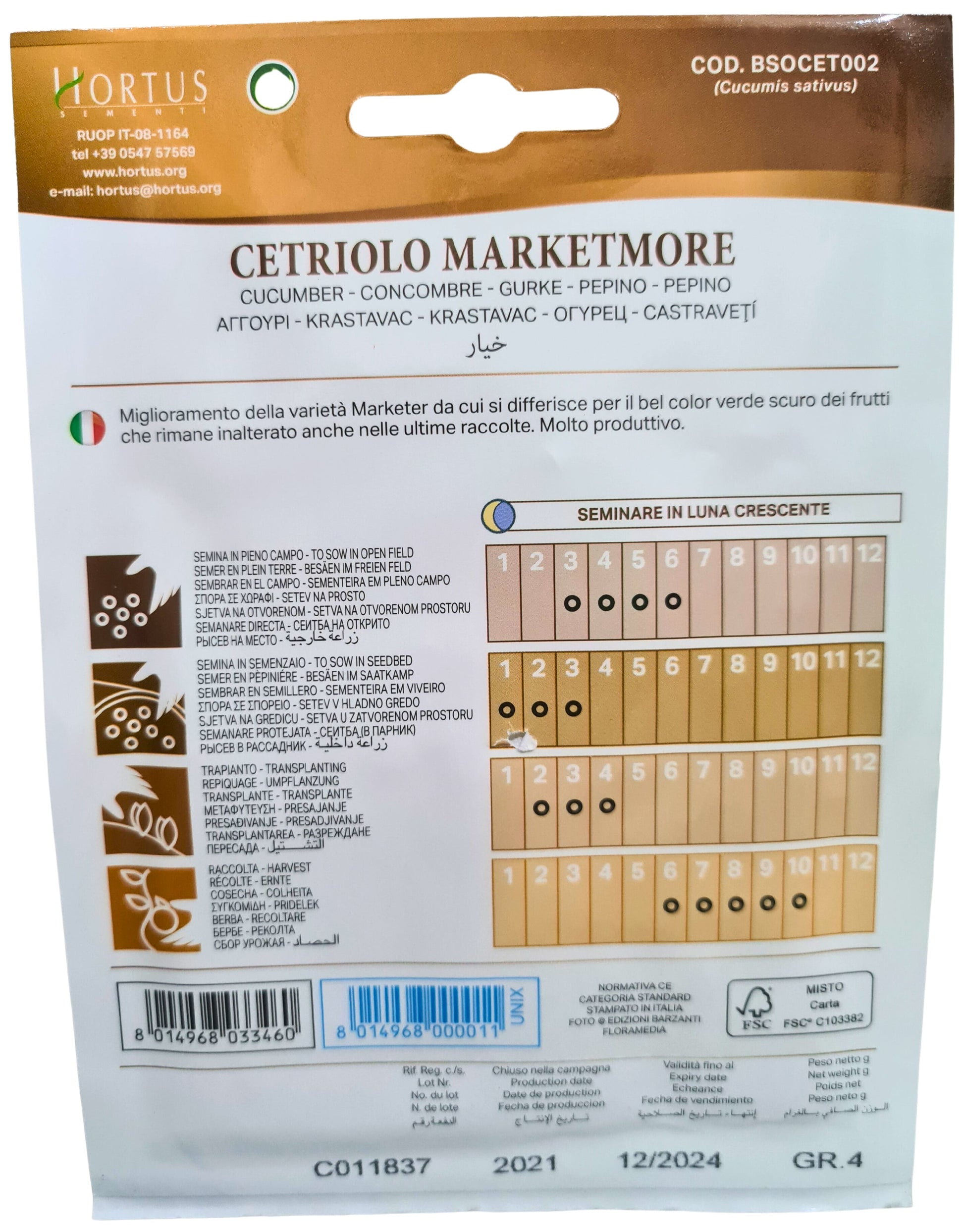 Producing deep green cylindrical fruits, 20-22 cm long and with a rounded tip. firm flesh with few seeds.SOWING: Sow outdoors from March to June at intervals of 30-40 cm with 1 metre between rows. Sow 2-3 seeds per hole,thinning out after germination.