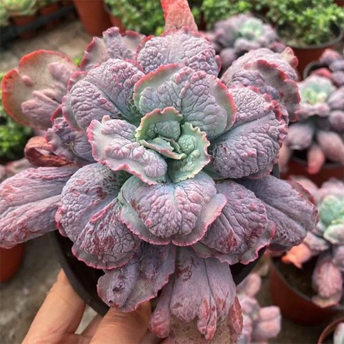 The Echeveria Baron Bold (9cm Pot) - Succulent is the perfect choice for any succulent enthusiast. Its distinctive blue-green rosettes make it an eye-catching addition to any indoor or outdoor garden. This hardy and low-maintenance succulent grows quickly and is easy to care for. Its unique look will add a unique touch to any home or garden.