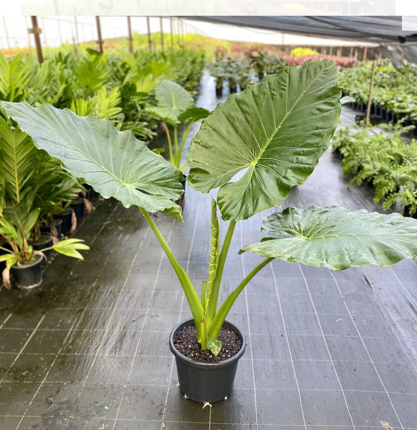 A stunning indoor feature plant or equally as impressive when planted in the garden. Its versatility also allows it to be an impressive indoor plant with large elephant ear-shaped leaves and deep green colour.