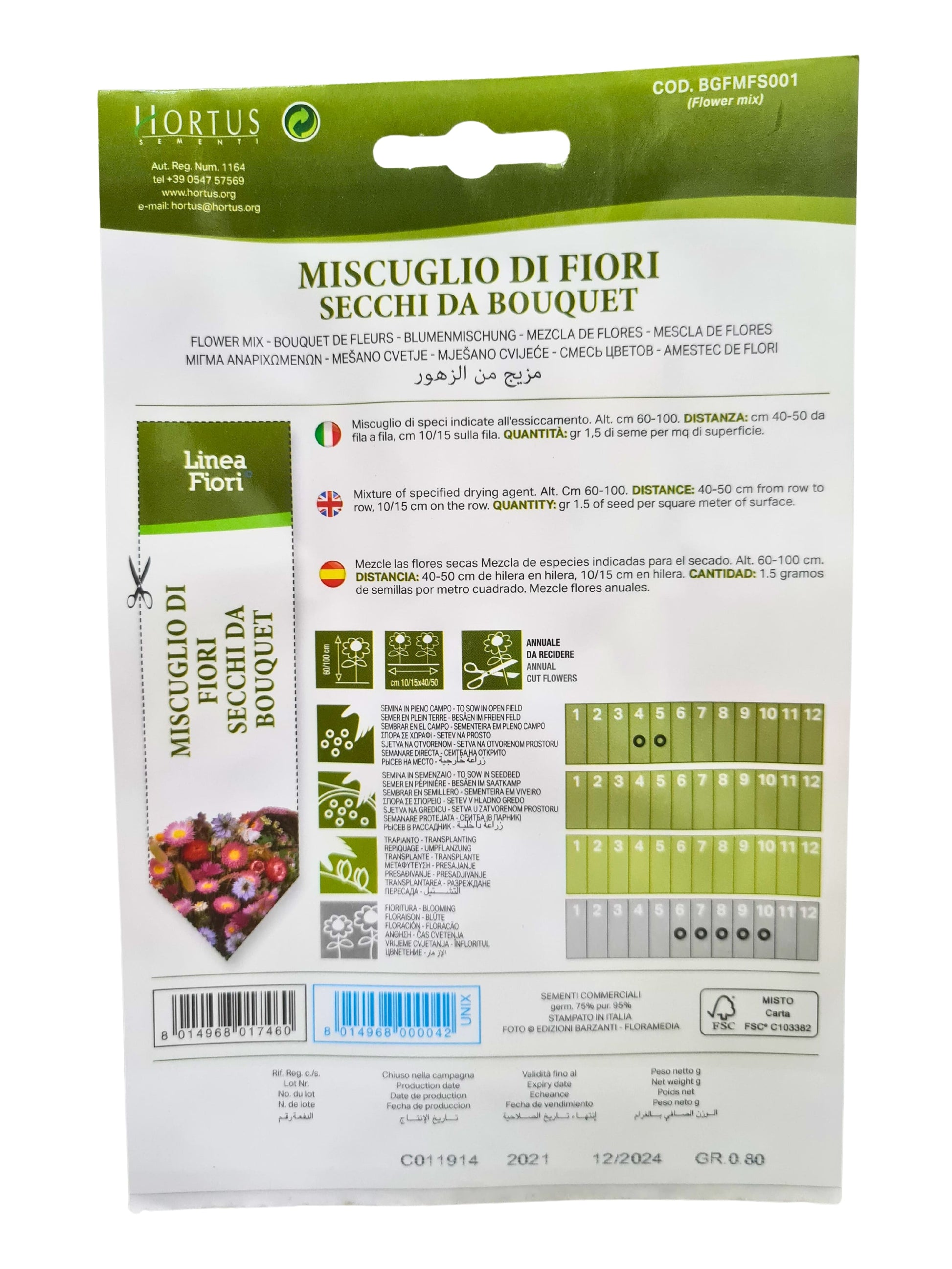 Mixture of specified drying agent. Alt. cm 60cm-100. Distance: 40-50 cm from row to row, 10/15 cm on the row. Quantity: gr 1.5 of seed per square meter of surface.