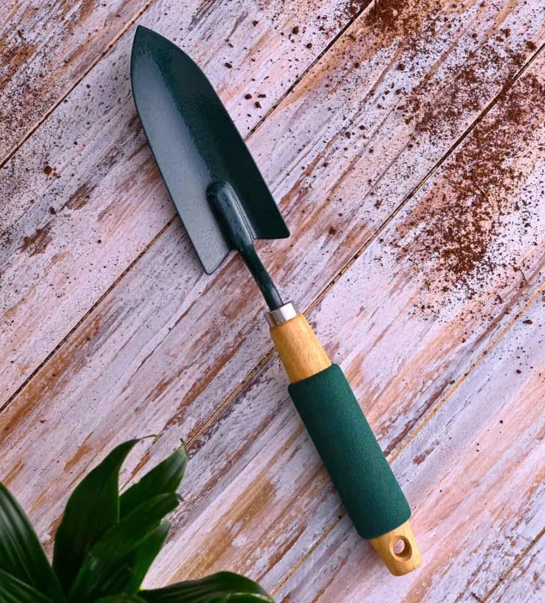 - Package Contents:1-Piece Transplanter with Wooden Handle and Cushion Grip, Material:Steel, Color:Green.