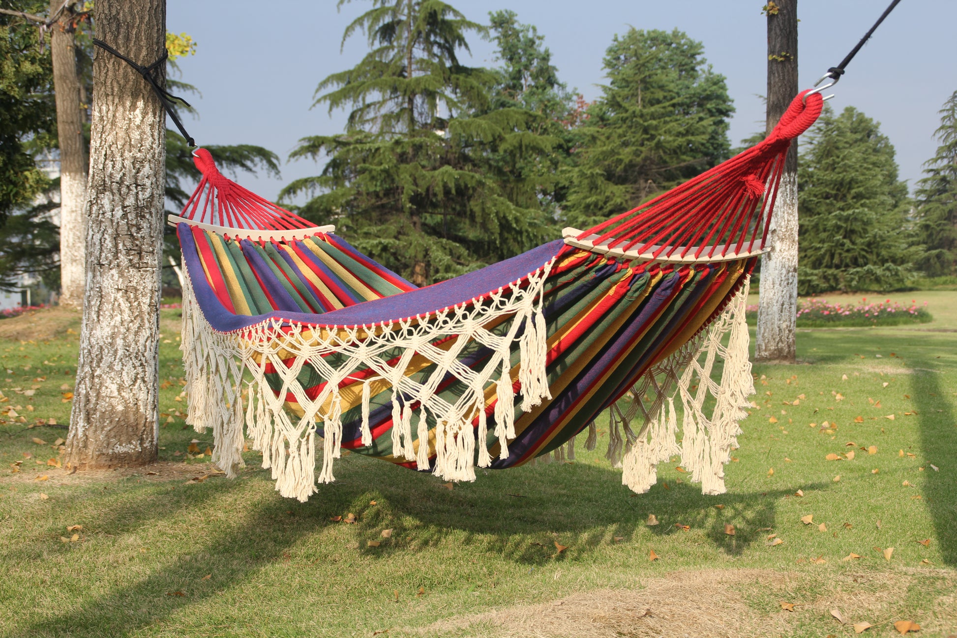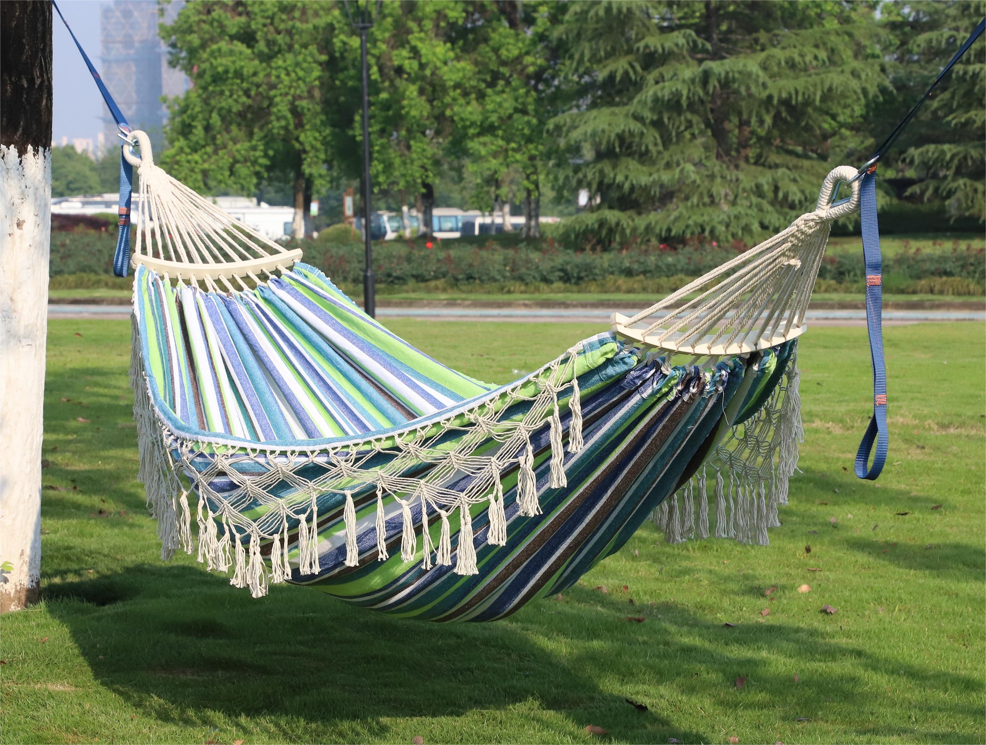 Relax in ultimate comfort with our Hammock 200*150cm. This spacious hammock provides a comfortable 200*150cm of space for you to lounge and unwind. Made from high-quality materials, it offers durability and support for a peaceful outdoor experience. Perfect for camping, picnics, or just enjoying some time in the sun.