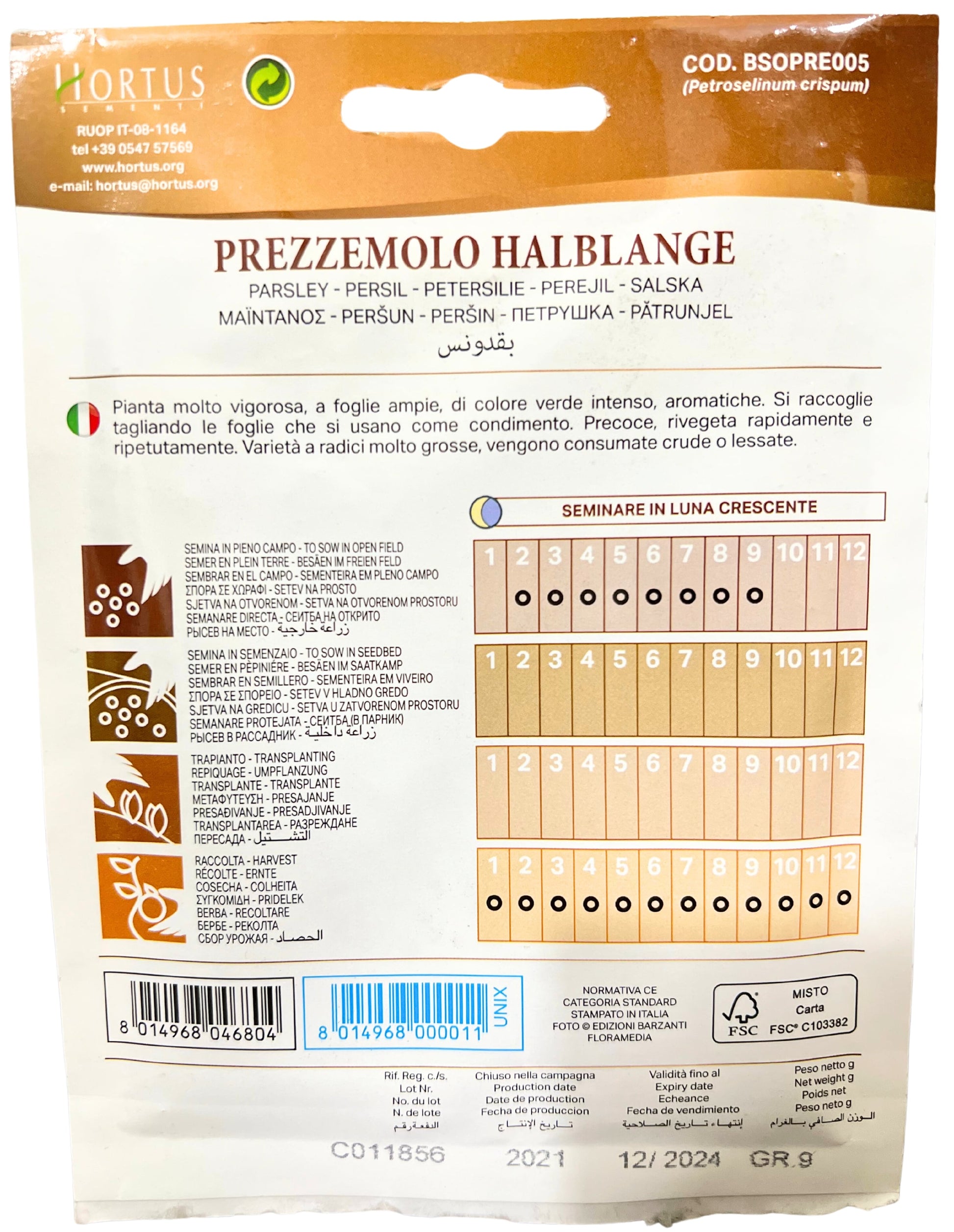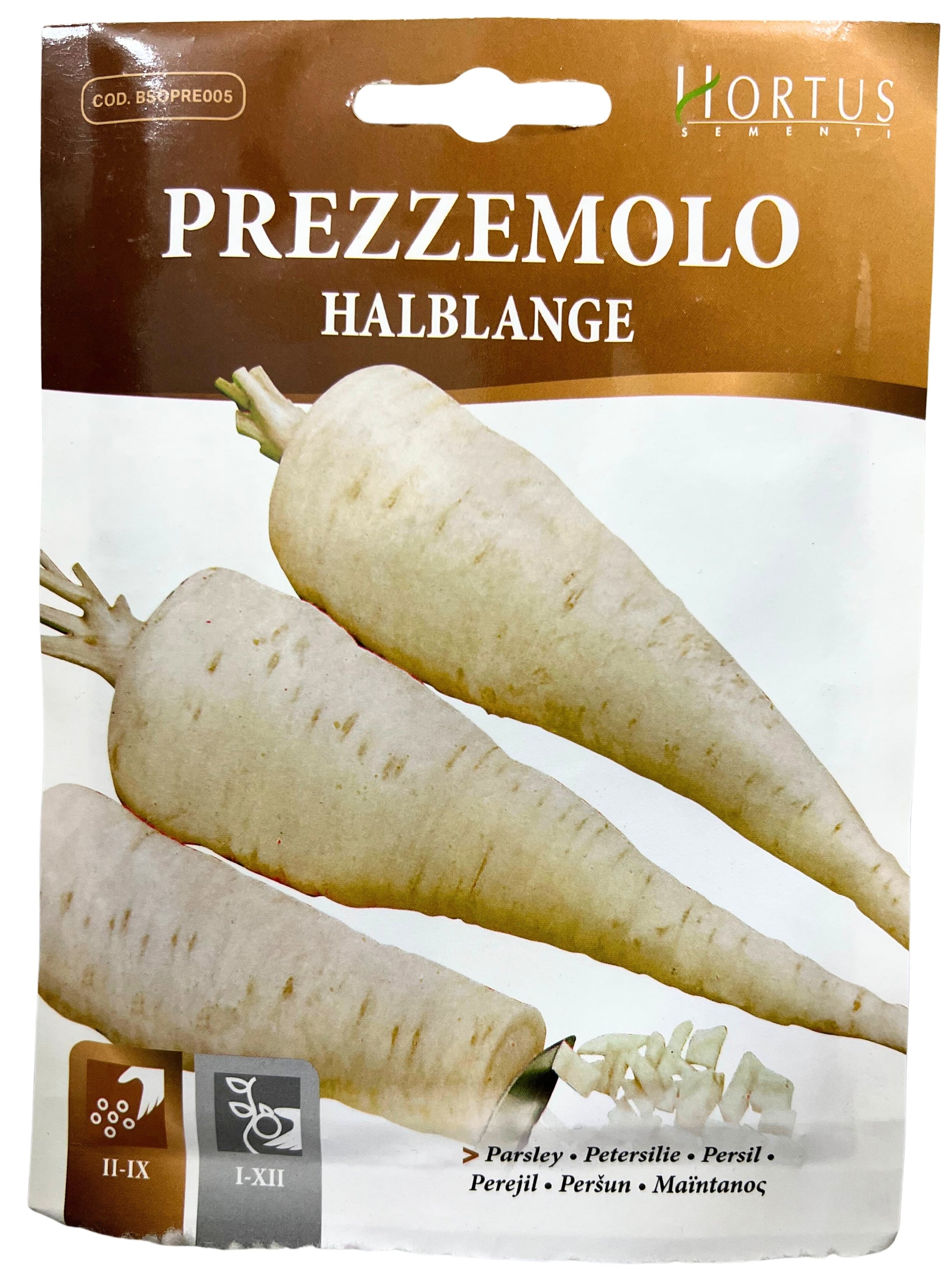 Half long white and this variety is truly half-long with bright white skin. The half-long trait (majority of the mass is near the top of the root which quickly tapers), combined with strong tops result in a parsnip that is notably easier to dig.Direct sow 2-4 seeds per inch in rows 12” apartThin to 4” spacing for large, straight roots.