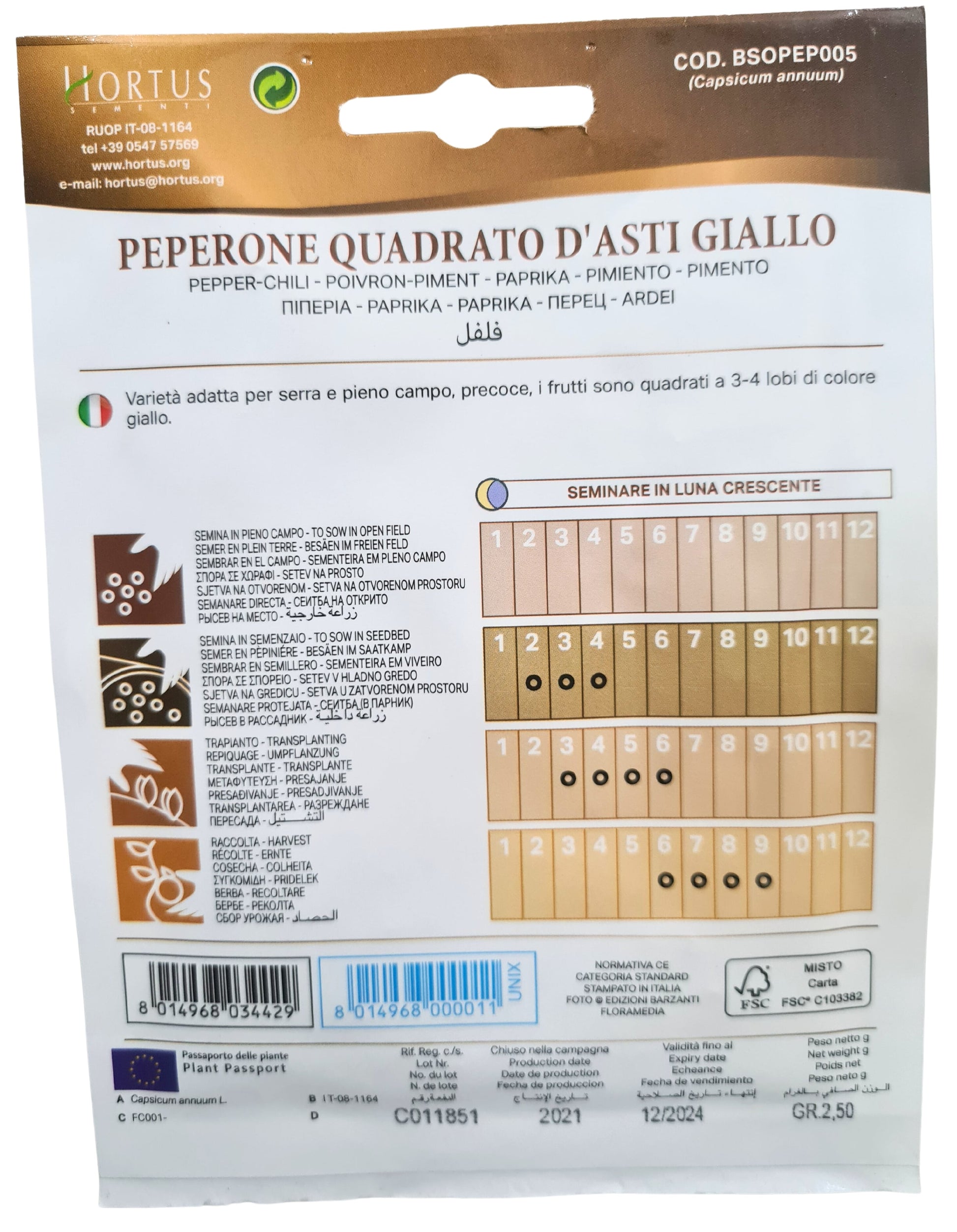 Pepper-Chili( Quadrato D'asti Giallo) Seeds