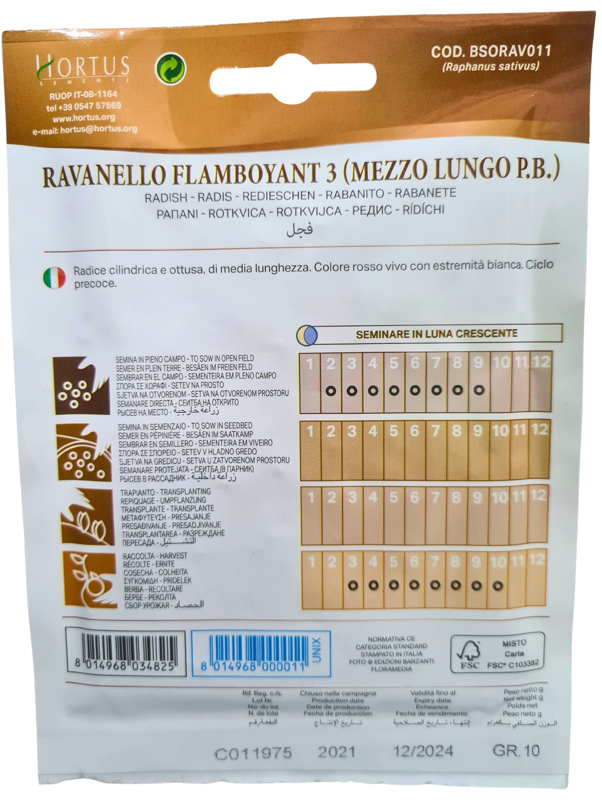 Radish (Flamboyant 3 Mezzo Lungo P.B.) Seeds