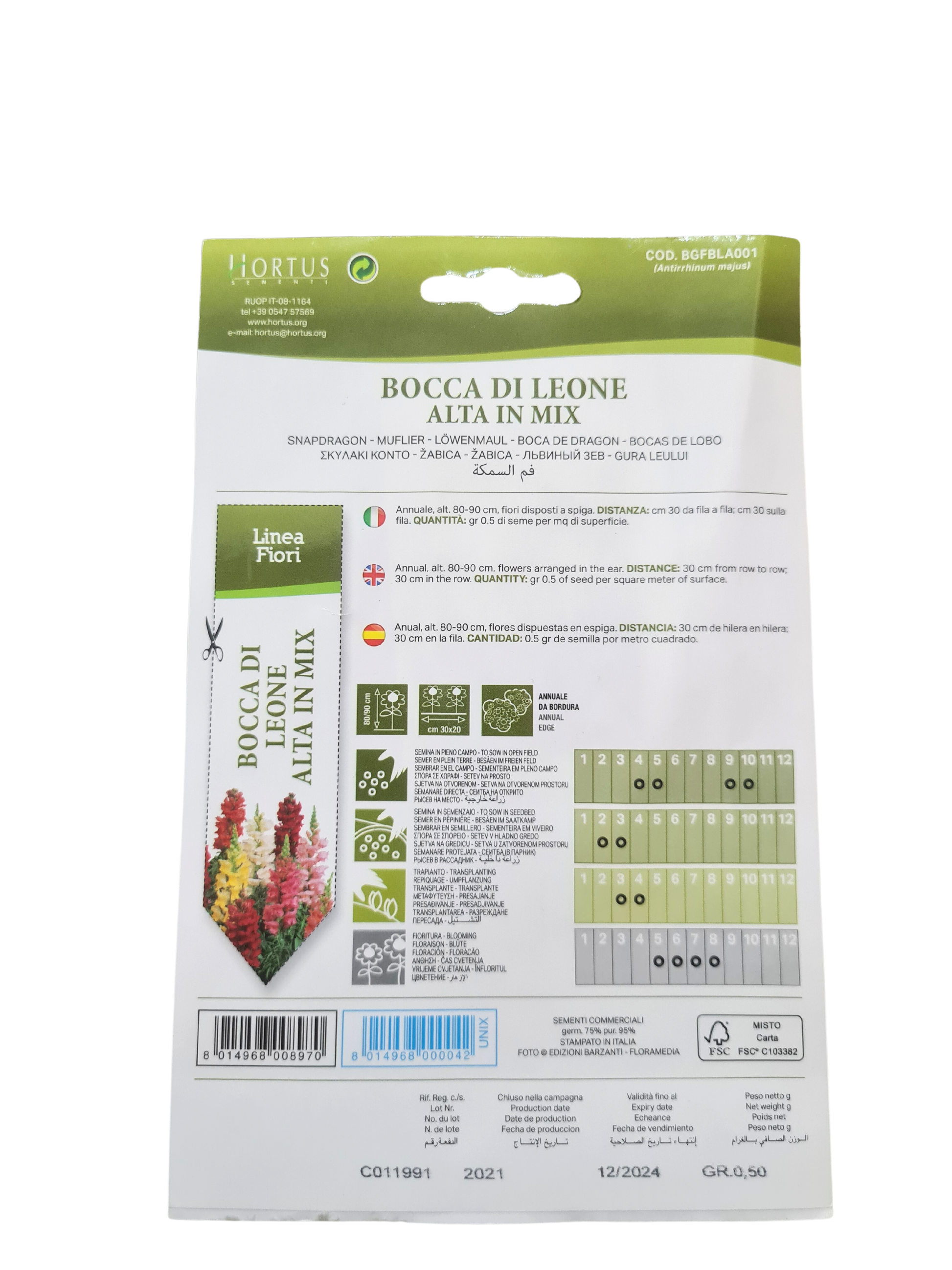 Refined-looking spike flowers that will surprise you in a very fragrant mix of colors (yellow, white, red and pink). Reaches a height of 80/90 cm and flowers from May to August. It is a perfect plant for flower beds and borders.Deposit a group of 7-10 seeds on the surface at a distance of about 30 cm from each other.