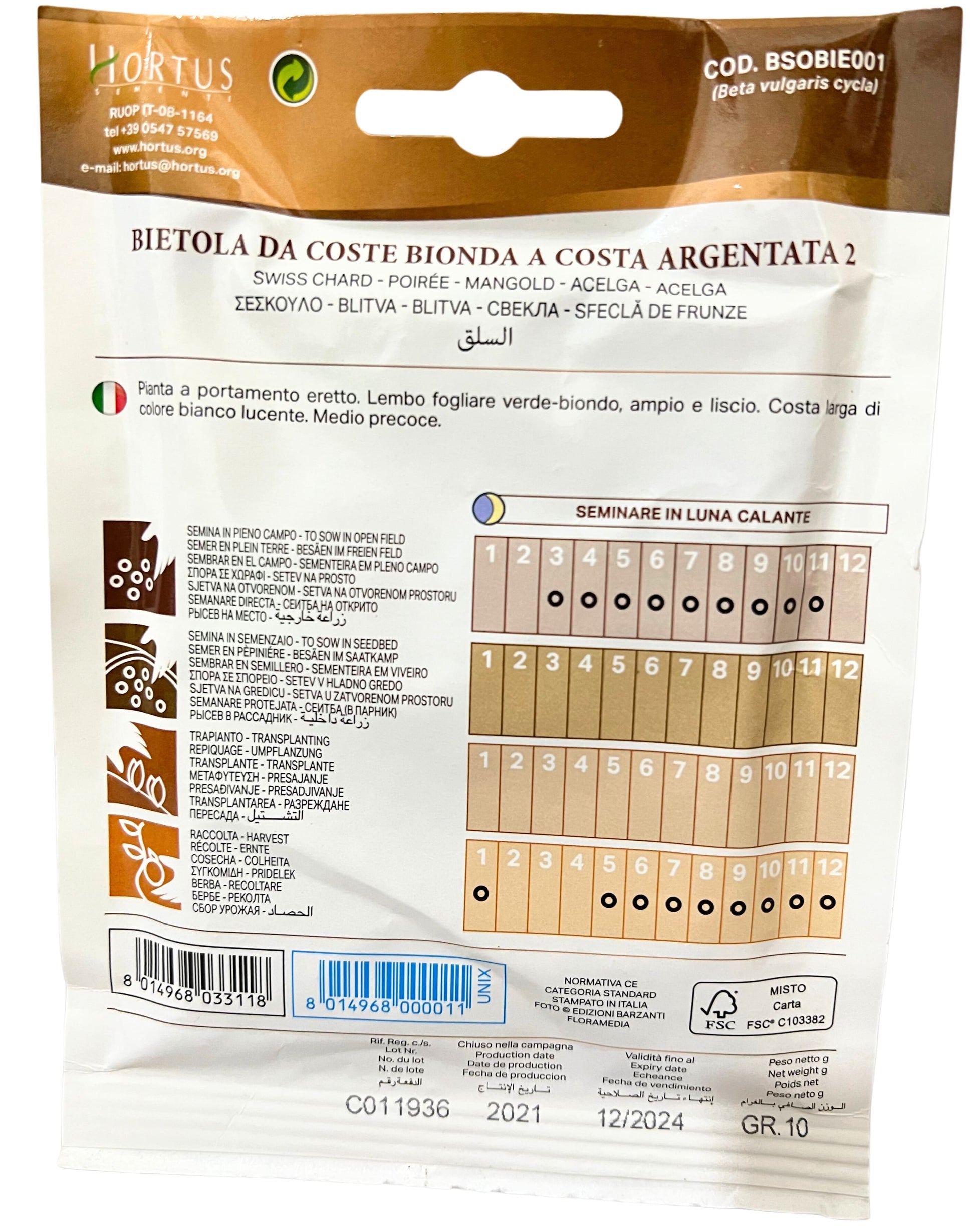 Erect plant with large, smooth, blond-green leaves and broad, shiny white ribs.Sowing: from February to OctoberDistance: 15/25 cm on the row, 40 cm between the rows