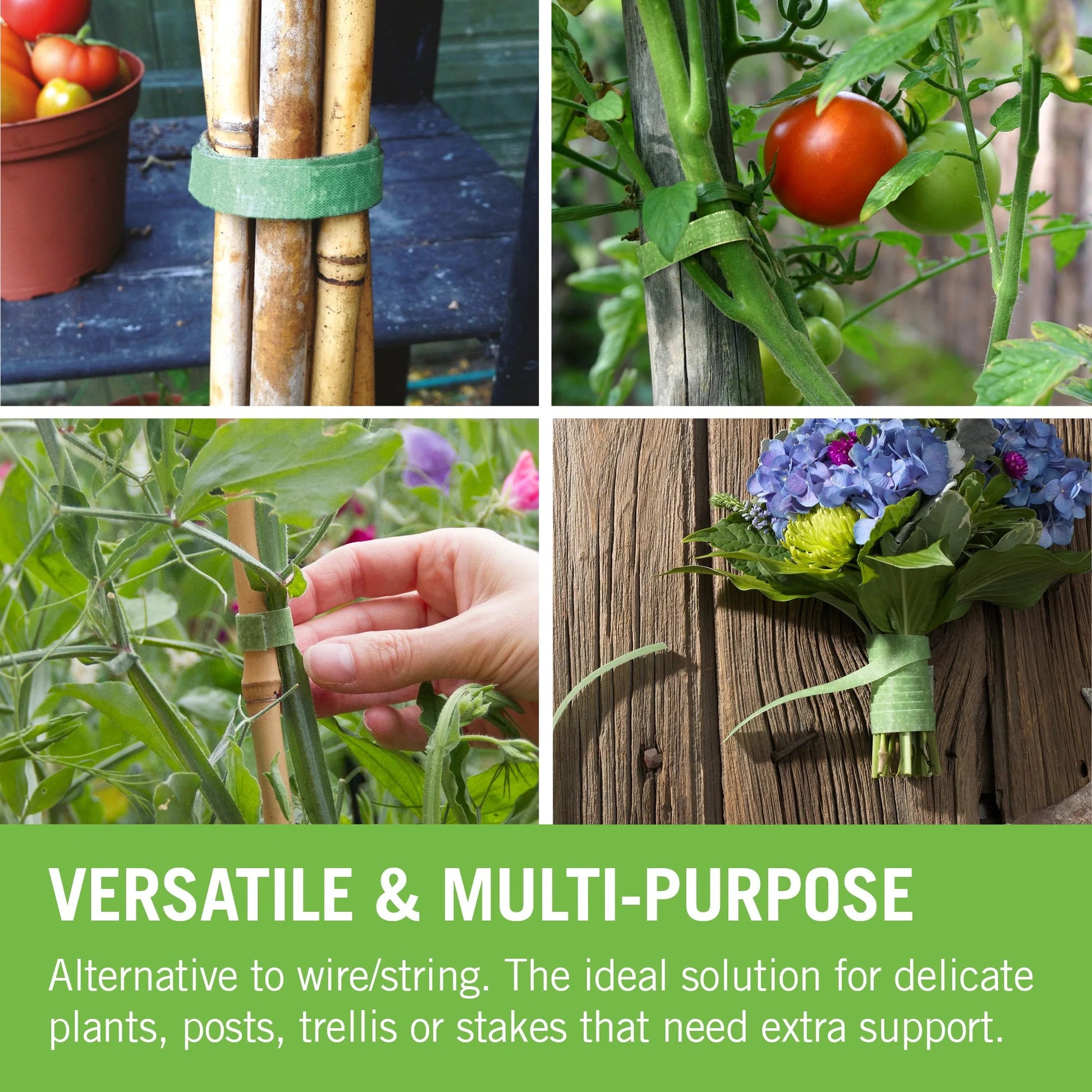The super soft fabric is gentle on stems to ensure that the tie does not rub and cut into the plant's stem - a better alternative to wires and string. This pack contains a 6m roll of green plant ties. To use, simply cut to size and then wrap around the plant and post, stake or trellis and press to secure it in place.