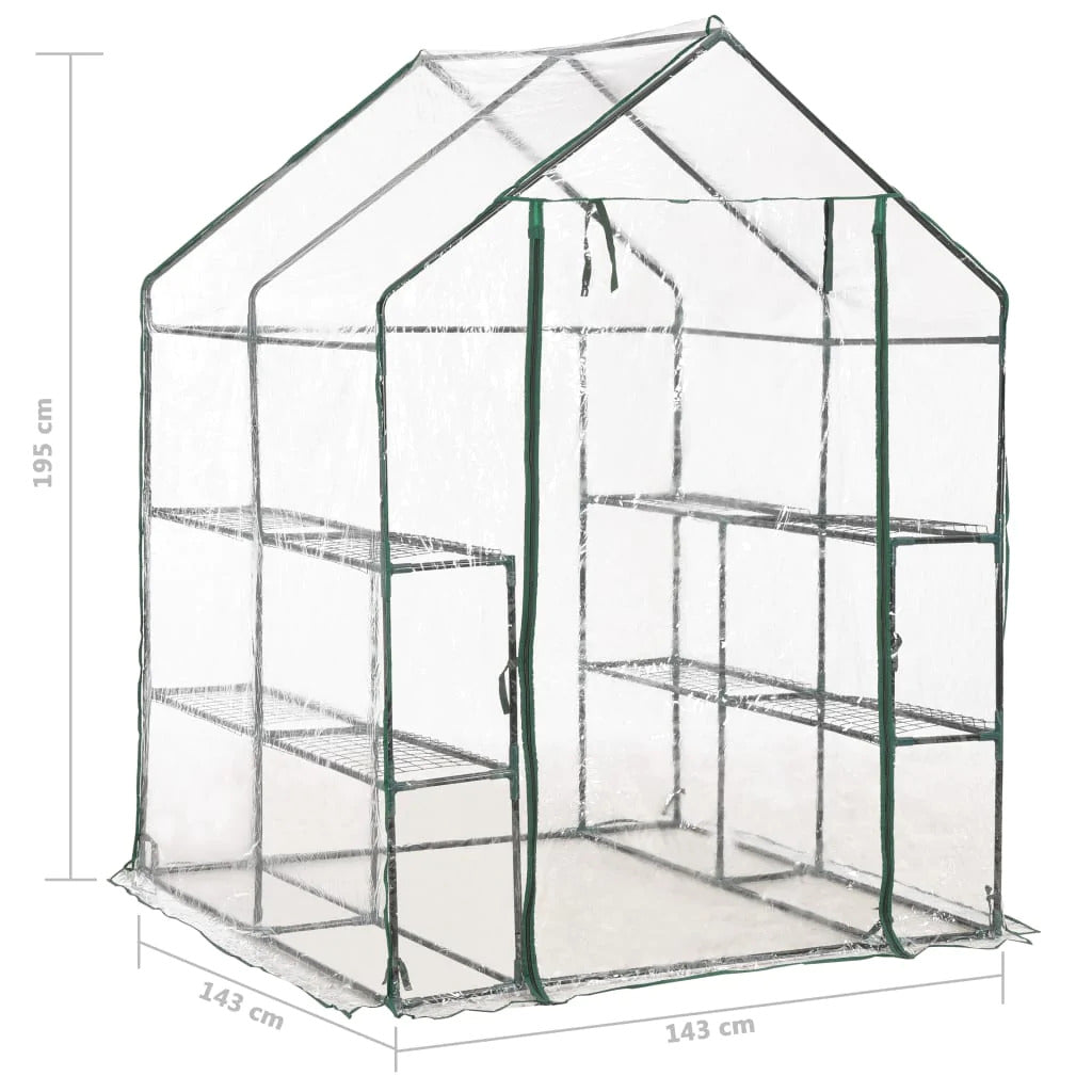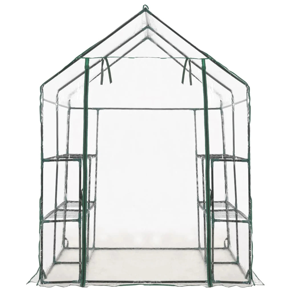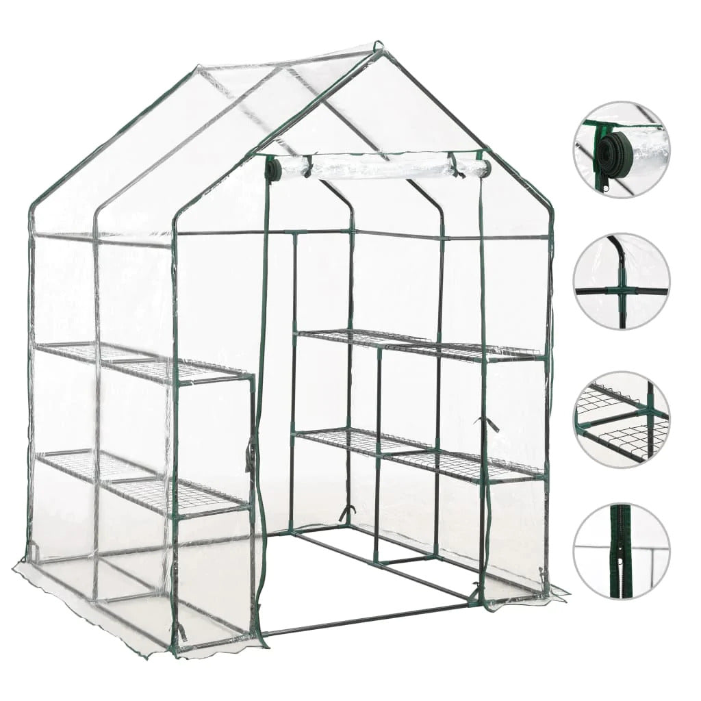 This greenhouse is structured with rust-resistant sturdy steel frame and PVC film, which ensures superior durability and for long-lasting use. Constructed with 8 wired shelves (4 on each side), this greenhouse provides ample space for your sprouting plants, blooming flowers and fresh herbs and vegetables. The transparent plastic cover allows sunlight to reach the flowers and plants, also you can monitor your plants all the time. Designed with zippered roll-up door, it ensures well air circulation and easy access to your plants. The greenhouse is easy to set up or take down with no special tools required and easy to move and store when season shifts