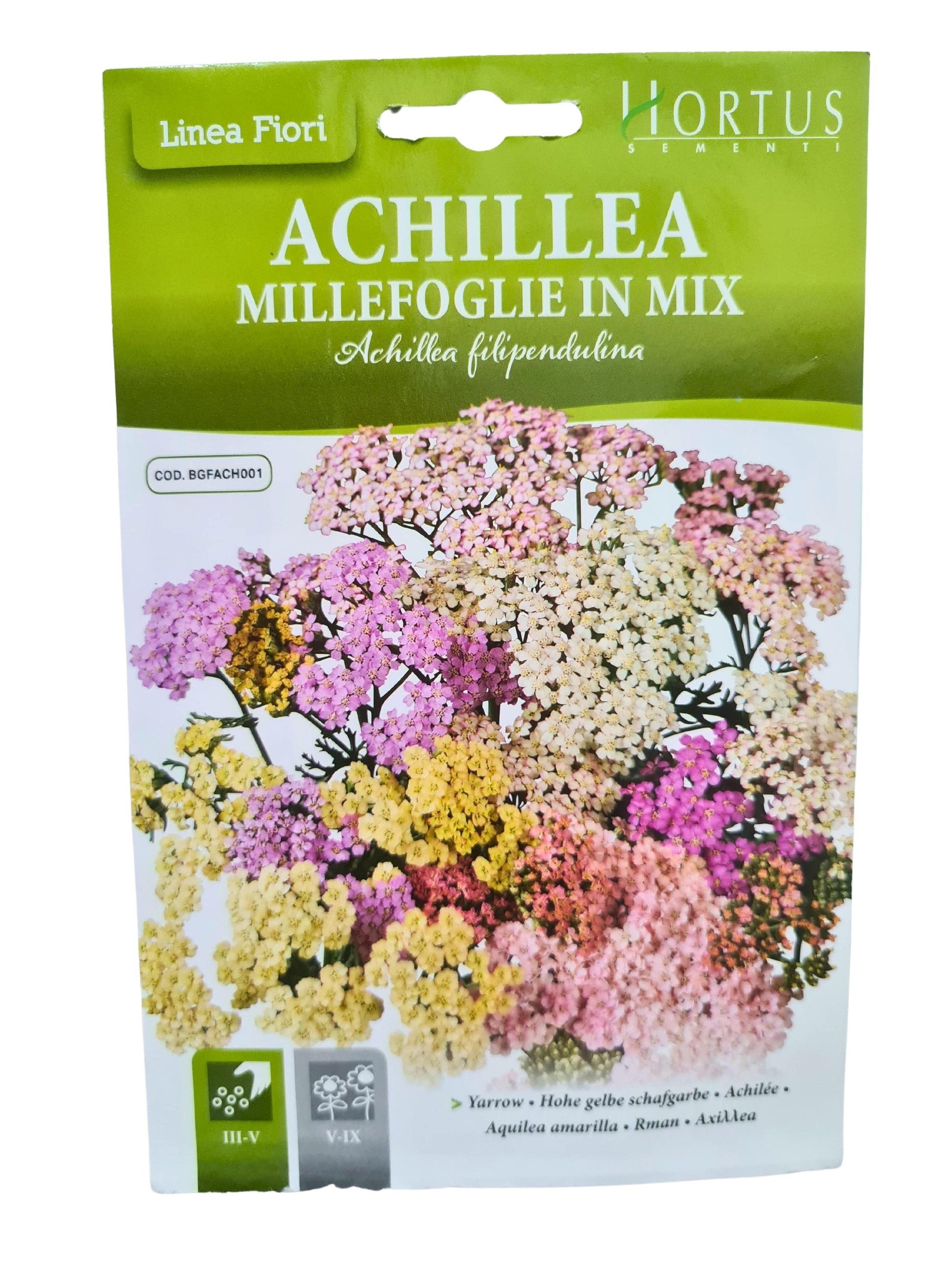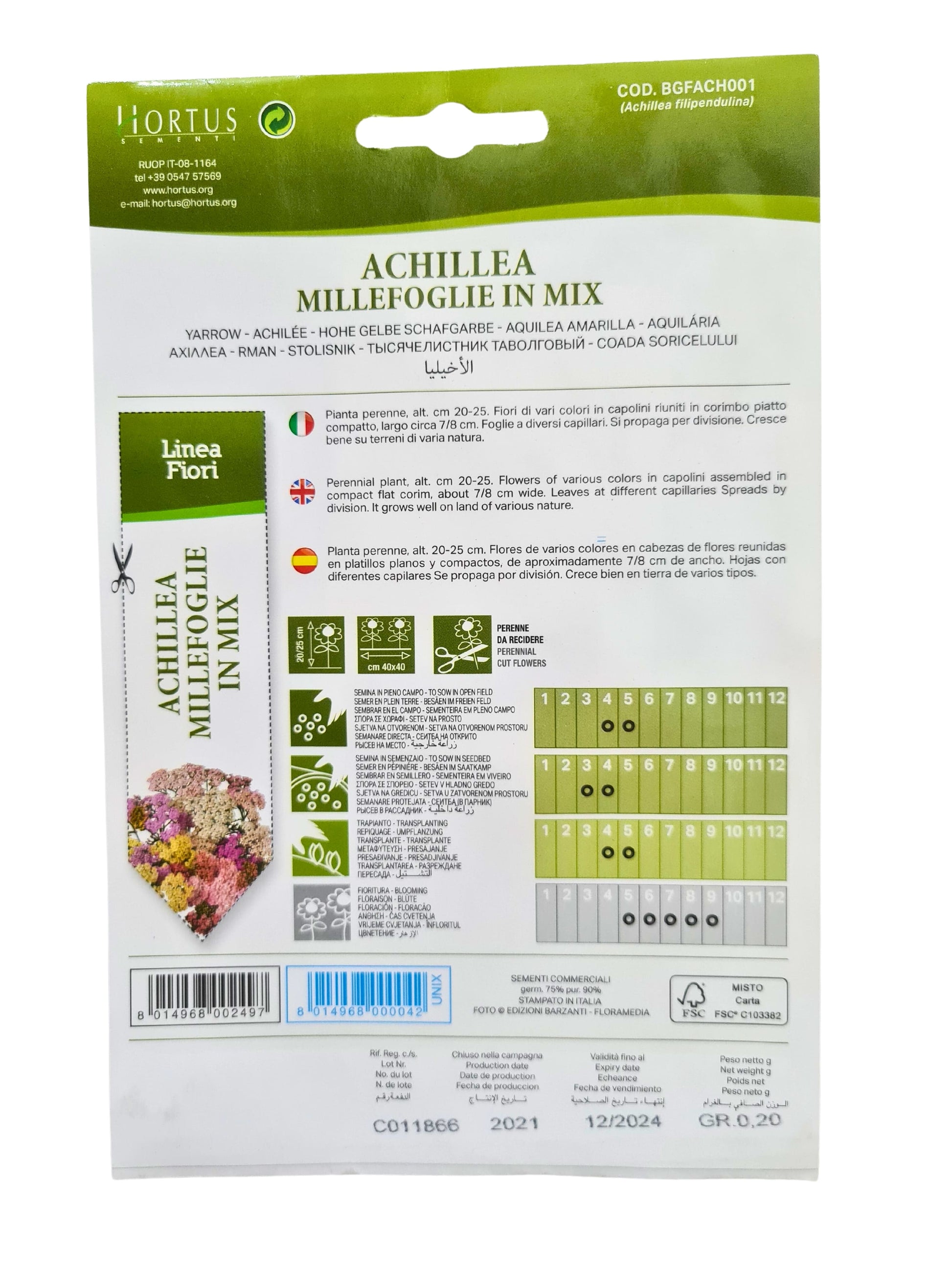 Perennial plant with flowers of various colors in heads gathered in a compact flat corymb, about 7/8 cm wide. Leaves with several capillaries. It propagates by division. It grows well on soils of various kinds.